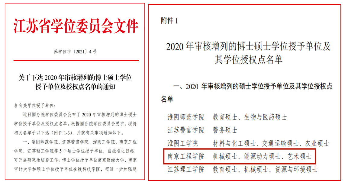 日前,国务院学位委员会发布《关于下达2020年审核增列的博士、硕士学位授予单位及其学位授权点名单的通知》(学位〔2021〕13号)。经国务院学位委员会审议批准,我校成功获批硕士学位授予单位,同时获批机械、能源动力、艺术硕士等三个硕士专业学位授权点。