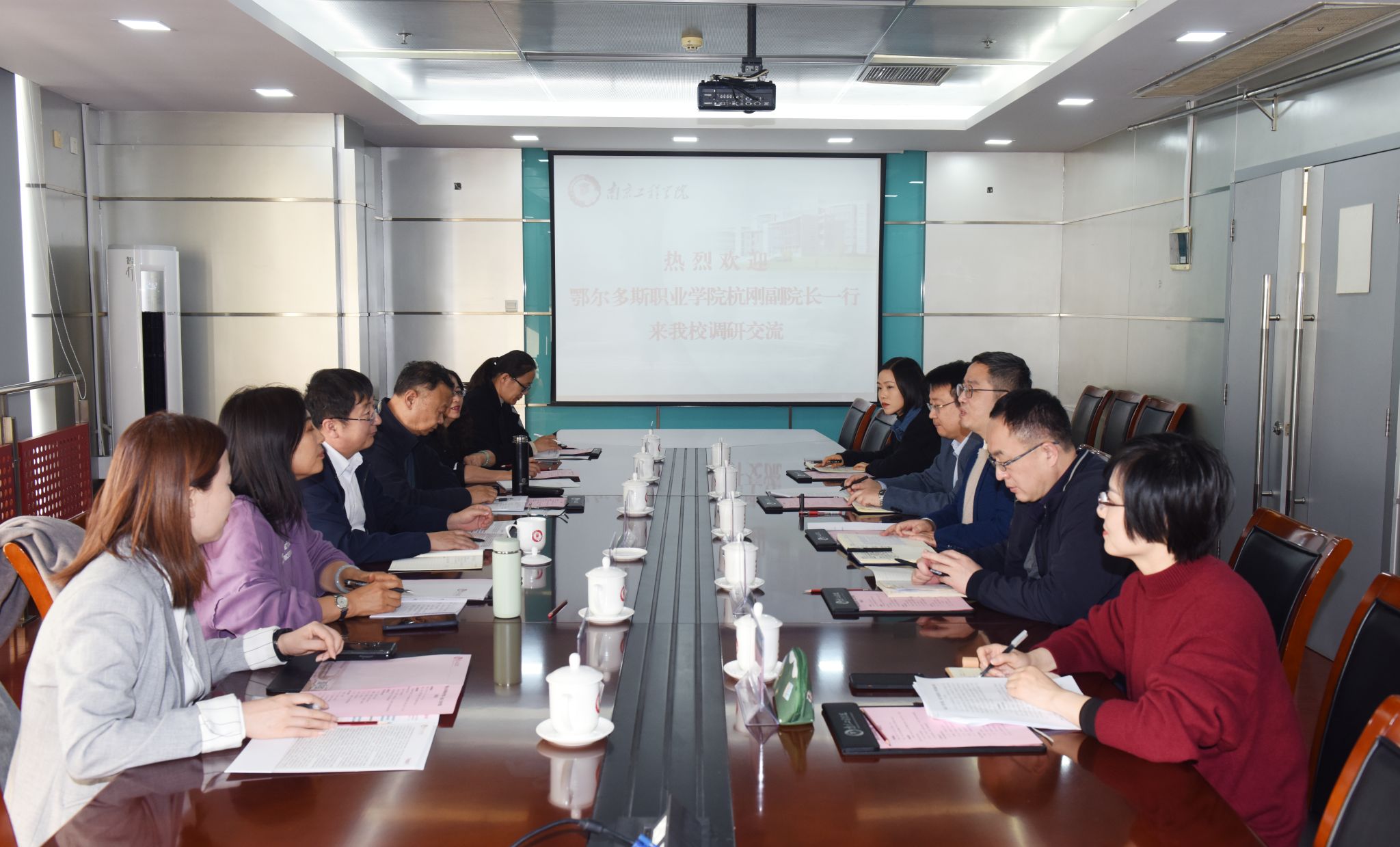 11月23日下午,鄂尔多斯职业学院党委委员、副校长杭刚带队来校走访交流。我校副校长包永强在至勤楼·行政北楼305会议室热情接待了来宾并座谈。人事处、教务处、科技与产业处等相关负责人参加座谈会。