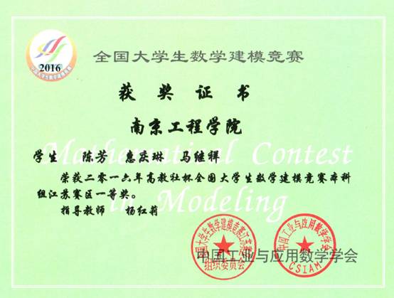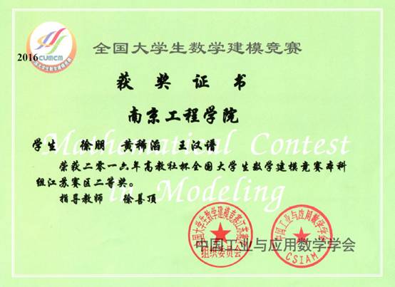 我校师生喜获2016高教社杯全国大学生数学建模竞赛国家一等奖
