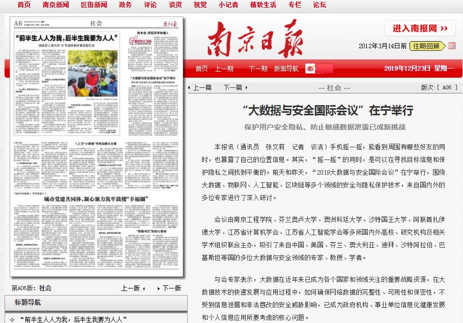 本报讯(通讯员 张文莉 记者 谈洁)手机摇一摇,能看到周围有哪些好友的同时,也暴露了自己的位置信息。其实,“摇一摇”的同时,是可以在寻找目标信息和保护隐私之间找到平衡的。前天和昨天,“2019大数据与安全国际会议”在宁举行,围绕大数据、物联网、人工智能、区块链等多个领域的安全与隐私保护技术,来自国内外的多位专家进行了深入研讨。