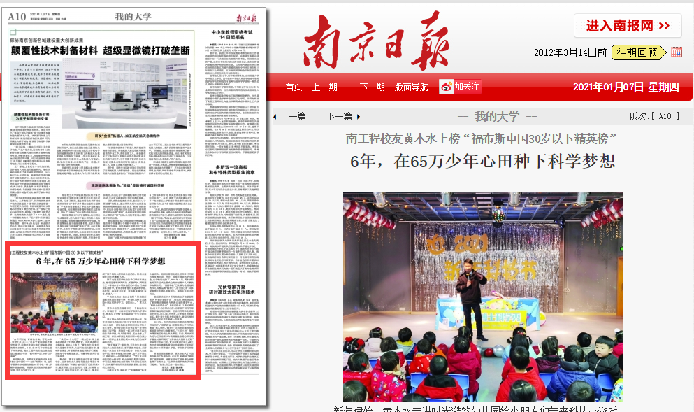 《南京日报》:6年,在65万少年心田种下科学梦想