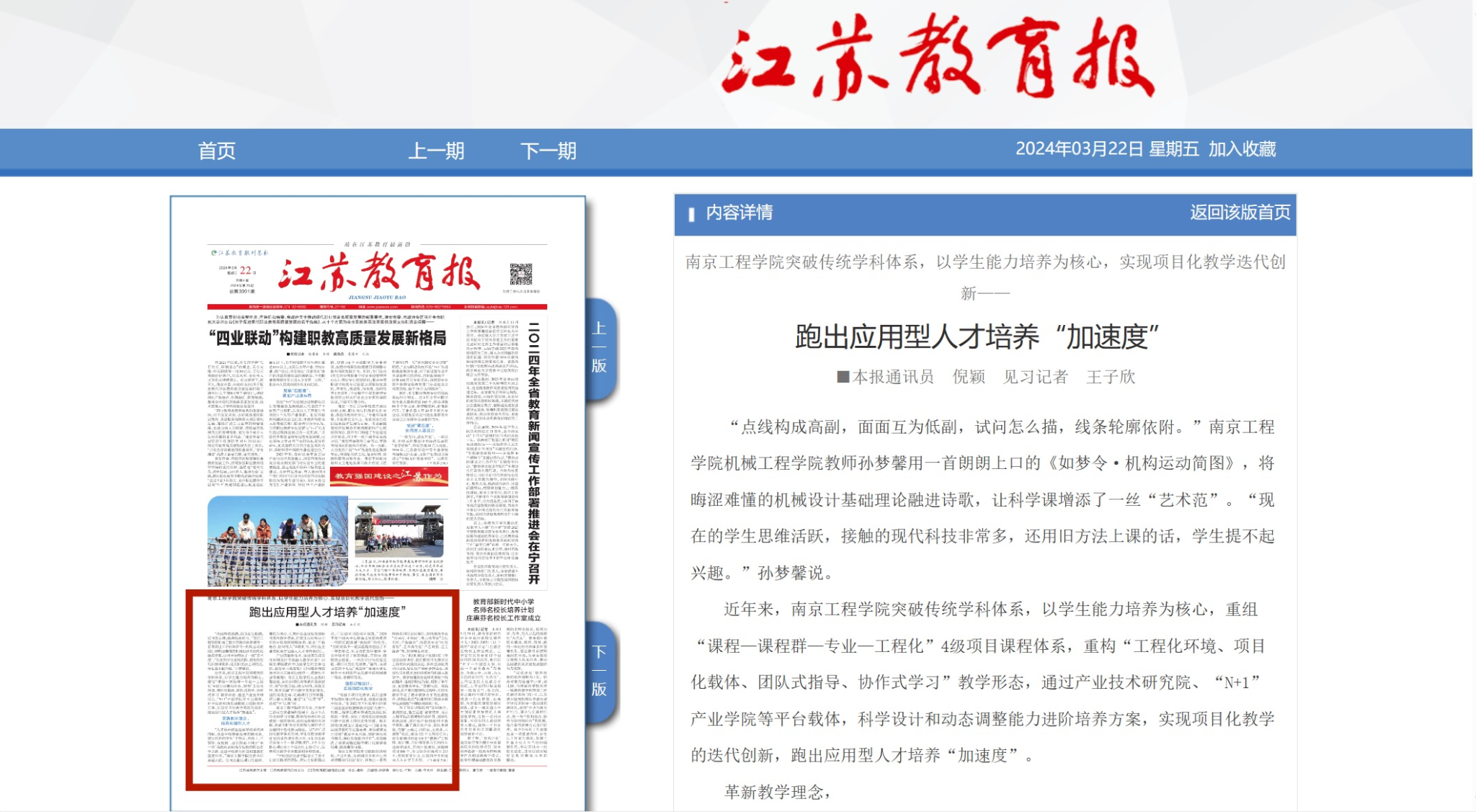 《江苏教育报》:跑出应用型人才培养“加速度”