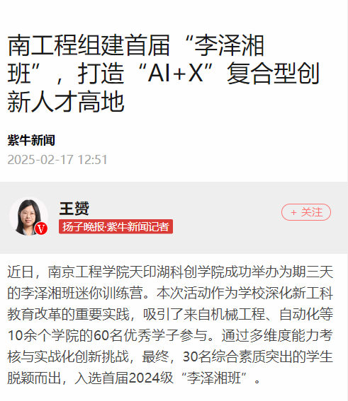 据介绍,作为凯发k8官网深化创新创业教育改革的重要载体,“李泽湘班”由国际机器人与自动化领域权威专家、XbotPark机器人部落创始人李泽湘教授指导,以“i机电、i能源、i信息”为重点方向,整合常州大学、XbotPark常州基地等优质资源,重点培育学生解决复杂工程问题的能力与科技创业素养,造就适应新质生产力发展的创新创业领军人才。