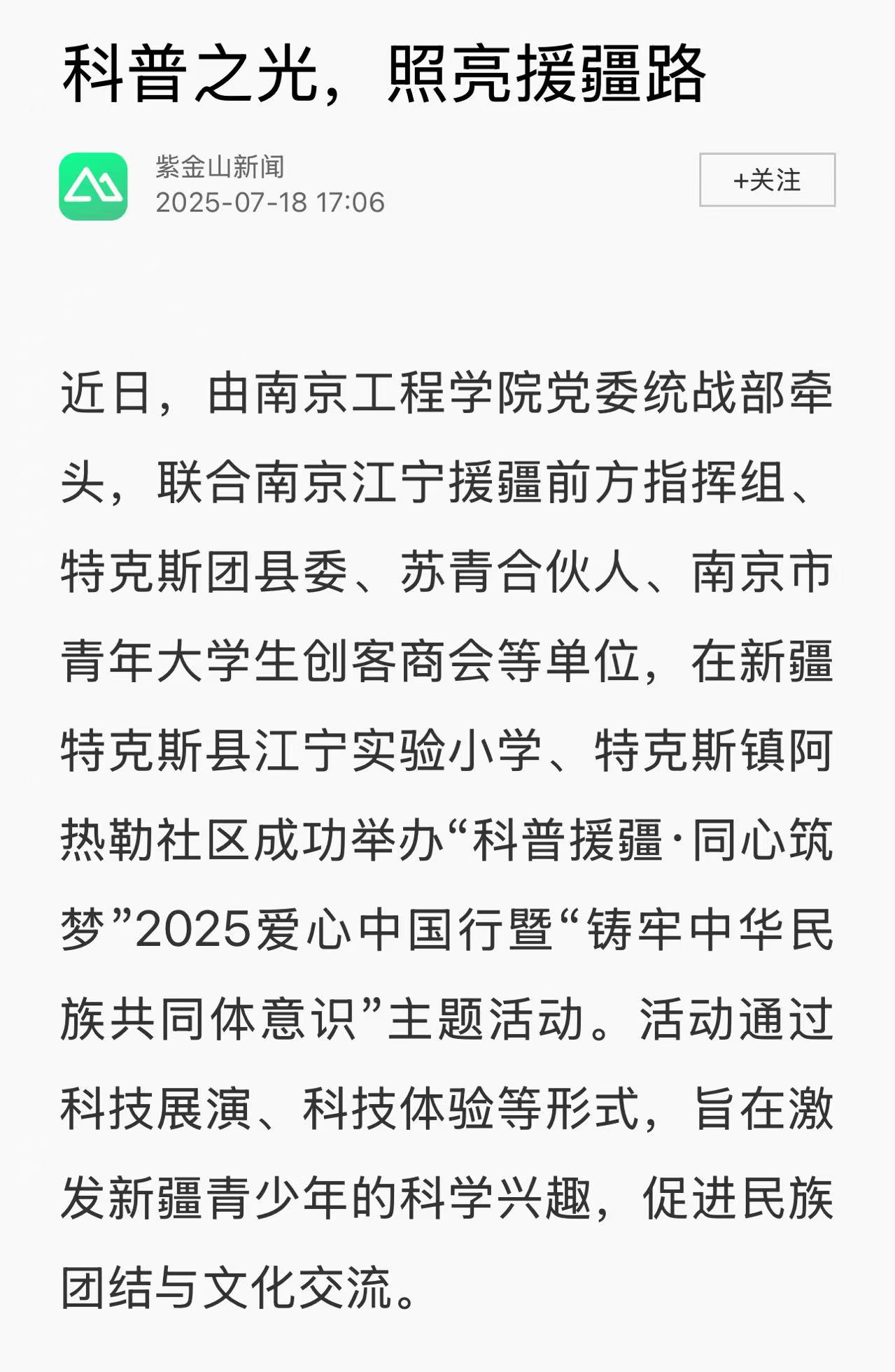 《紫金山新闻》:科普之光,照亮援疆路