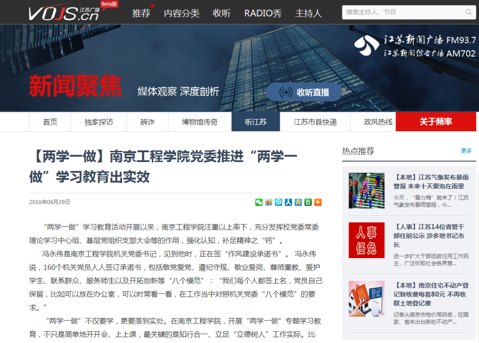 《江苏新闻广播》:【两学一做】凯发k8官网党委推进“两学一做”学习教育出实效