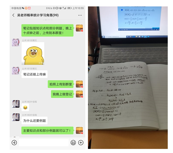 为保障《概率论与数理统计》课程能够顺利上线,教学团队全体成员齐心协力,各司其职。青年教师们根据课程建设要求每人制作一节PPT、录制视频,而老教师们则及时学习在线教学软件的使用:包括超星学习通、中国大学慕课、腾讯会议、腾讯教师极速课堂等等。无论是青年教师还是老教师,大家身上的担子都很重,时间紧、任务艰巨,但团队人员毫无半点怨言,都积极投身到工作中去,有的工作到凌晨2点,第二天依然继续。正是这种不怕困难、迎难而上,逢山开路、遇水架桥的精神支持着大家保质保量地完成了在线教学资料的上线,保障了大家都可以自己进行在线教学。同时,为了使得学生可以更好更快地使用学习工具进行在线学习,团队老师们八仙过海、各显神通,有的老师使用超星直播客户端就该课程中在线学习的相关问题进行了网络直播与交流,有的老师在QQ群发布相关的学习指导,这些做法,有效帮助了同学们尽快了解和掌握线上学习的基本要求。