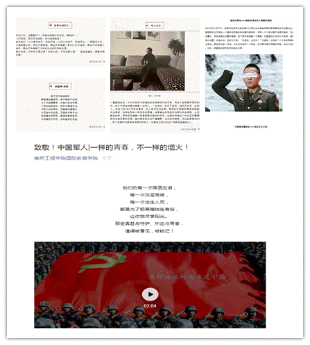 国防是民族生存之盾。日前,国际教育学院开展“致敬中国军人”线上国防教育活动。此次活动的主题是“讲好军人故事,展现军人风采”。同学们通过散文、诗歌、微视频等形式学习军人优秀品质,唱响主旋律,传播正能量。
